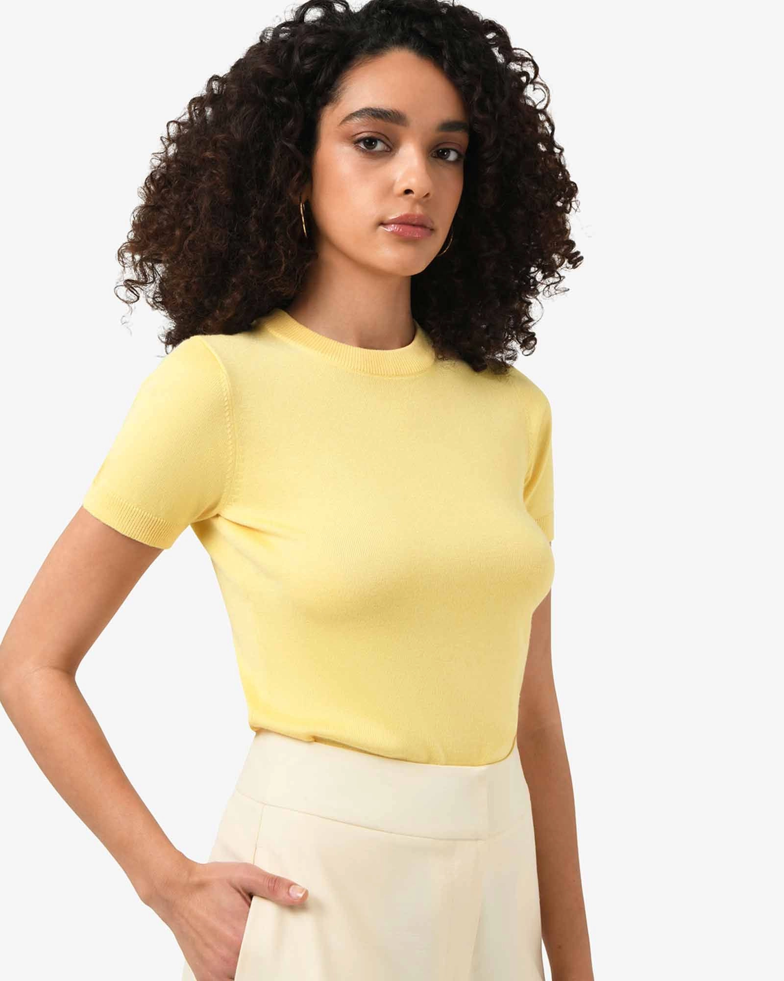 The Catherine Short Sleeve Knit is simple in design making it a versatile foundation for all your favourite separates.