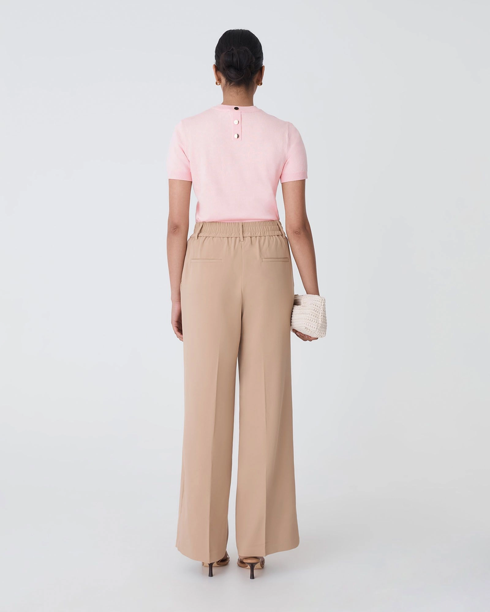 - Back neck gold-tone button detail
