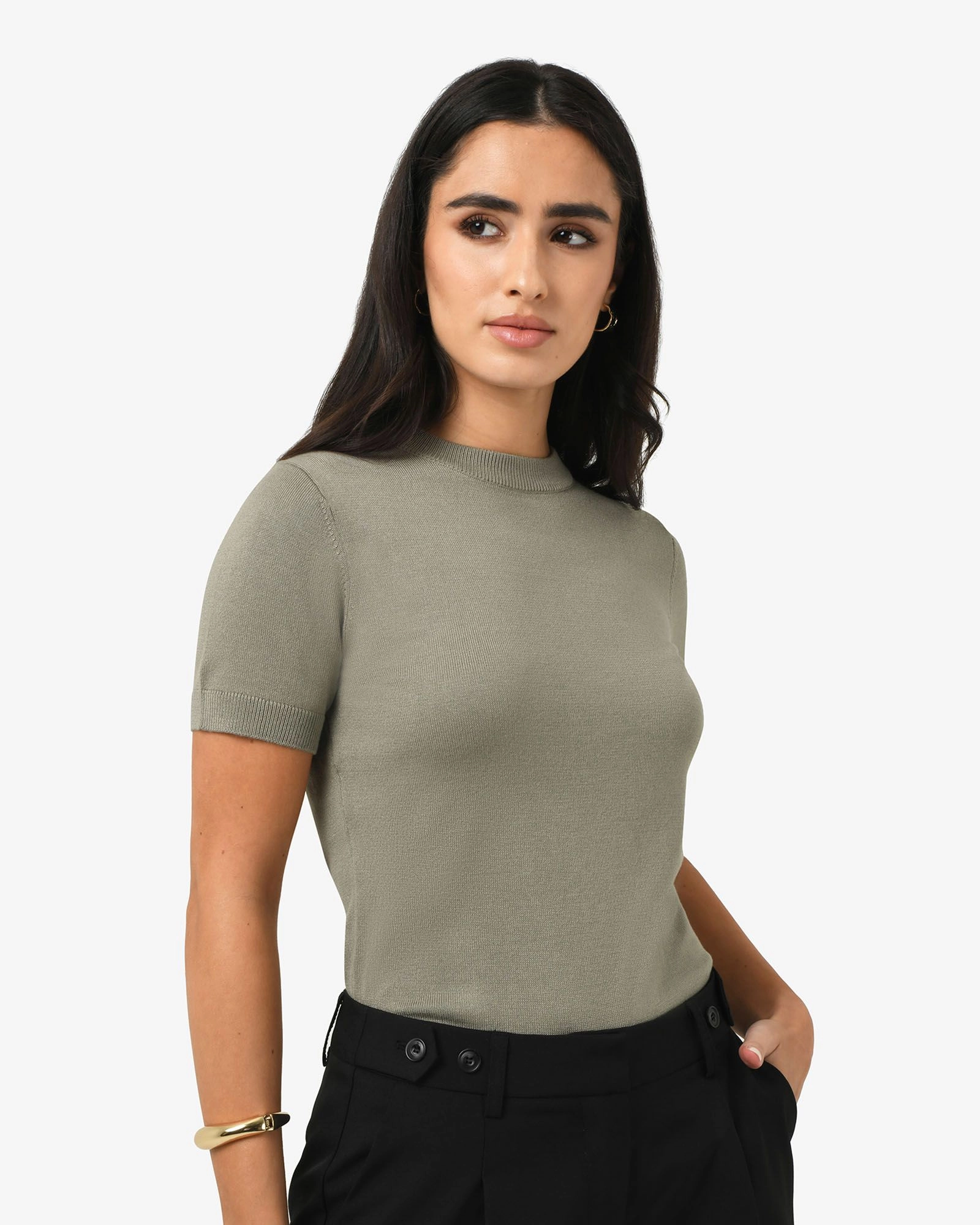 The Catherine Short Sleeve Knit is simple in design making it a versatile foundation for all your favourite separates.