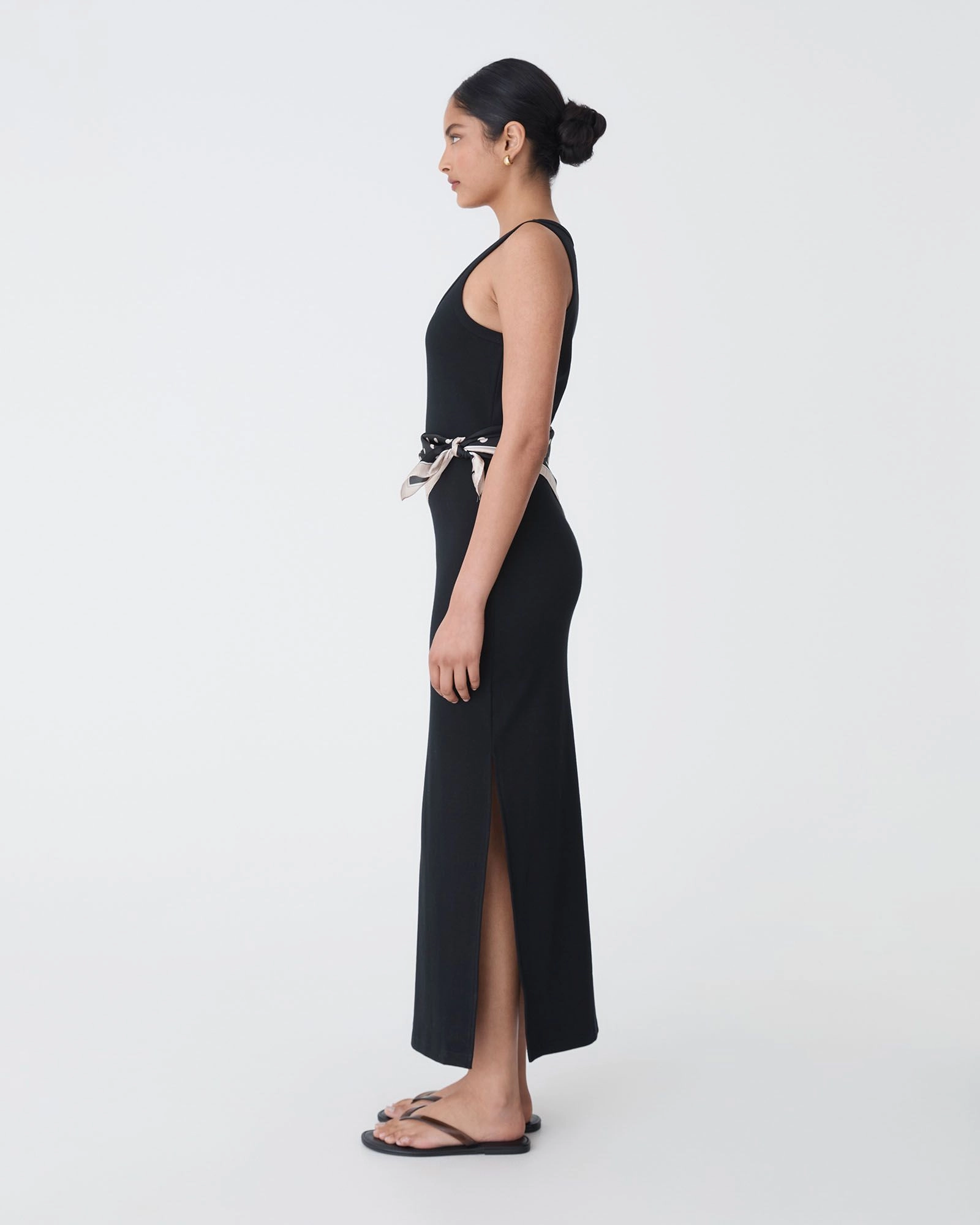 The Devin Cotton Knit Dress features a body skimming silhouette, a classic scoop neckline, and tank straps for comfortable wear. Made from a ribbed, cotton knit fabrication that gently hugs the figure, it has a high side slit that adds movement, making it perfect for relaxed days or casual evenings. Accessorise with statement jewellery to complete your look.