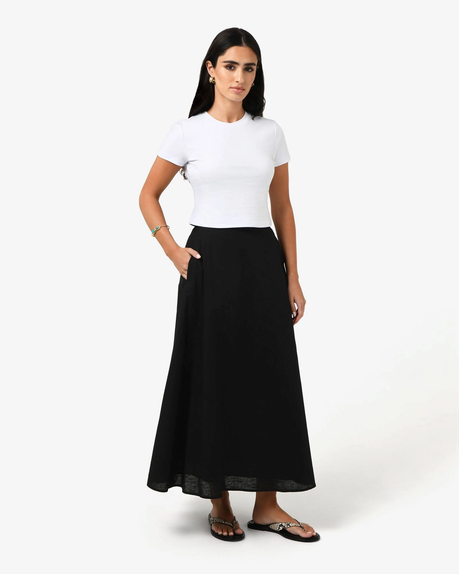 The Kenya Linen Skirt is a simple everyday linen midi skirt you’ll adore summer after summer. Crafted in a lightweight linen blend, the Kenya Linen Skirt combines style and comfort. Match it with the Kenya Top or any basic top for the perfect summer ensemble.