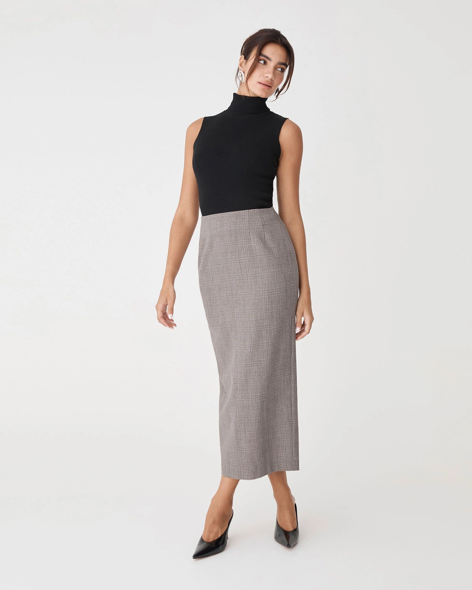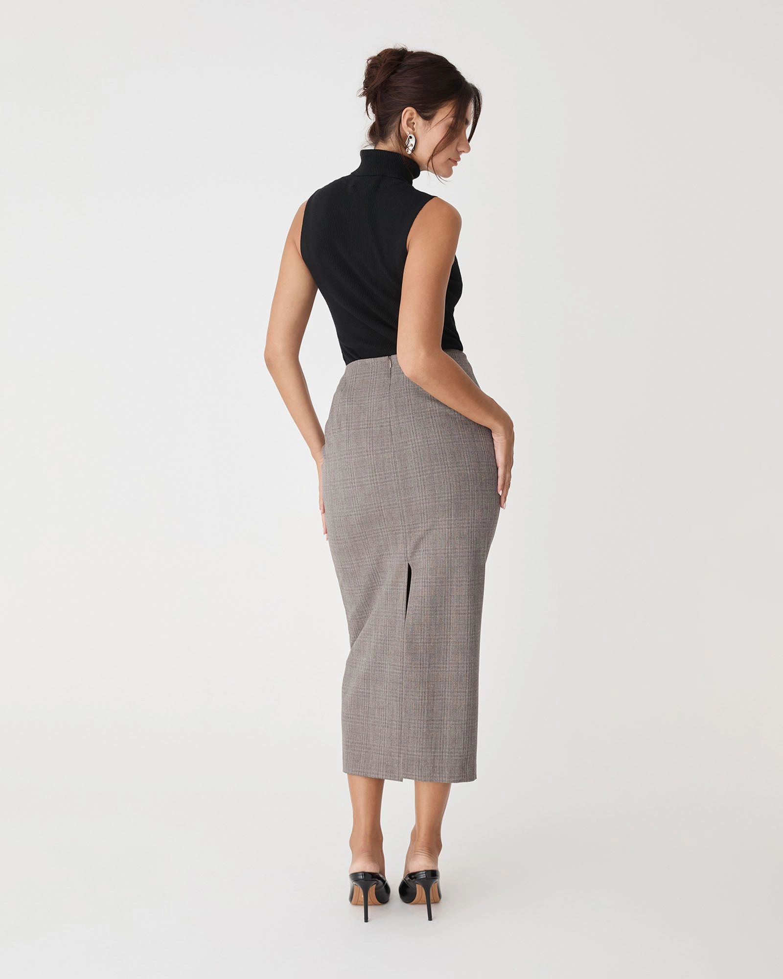 The Loretta Midi Pencil Skirt is a tailored piece designed with a sleek high-waisted silhouette and classic check pattern, creating a flattering shape while maintaining a polished look. The midi length makes it an easy choice for both professional and smart occasions. Pair with a crisp blouse or the matching Loretta Pleat Belted Top for a co-ordinated outfit.