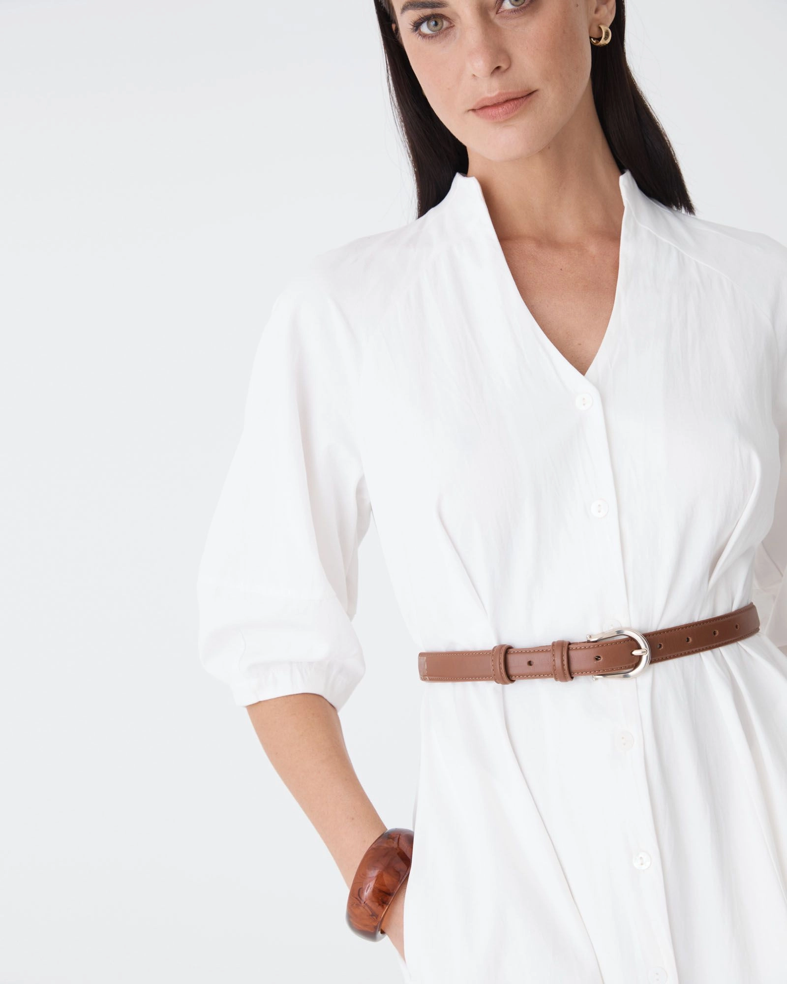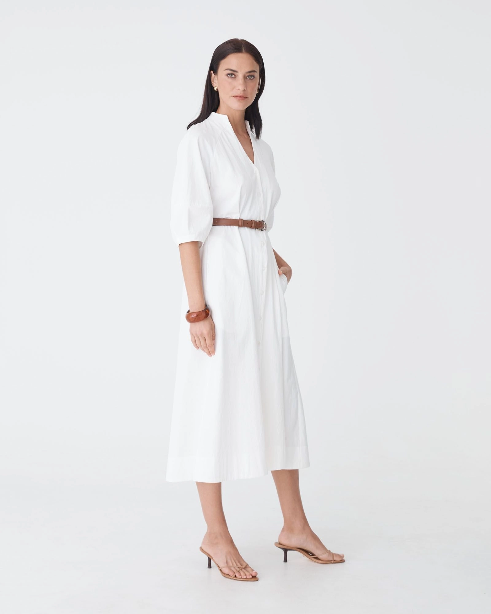 - Midi-length shirt dress
