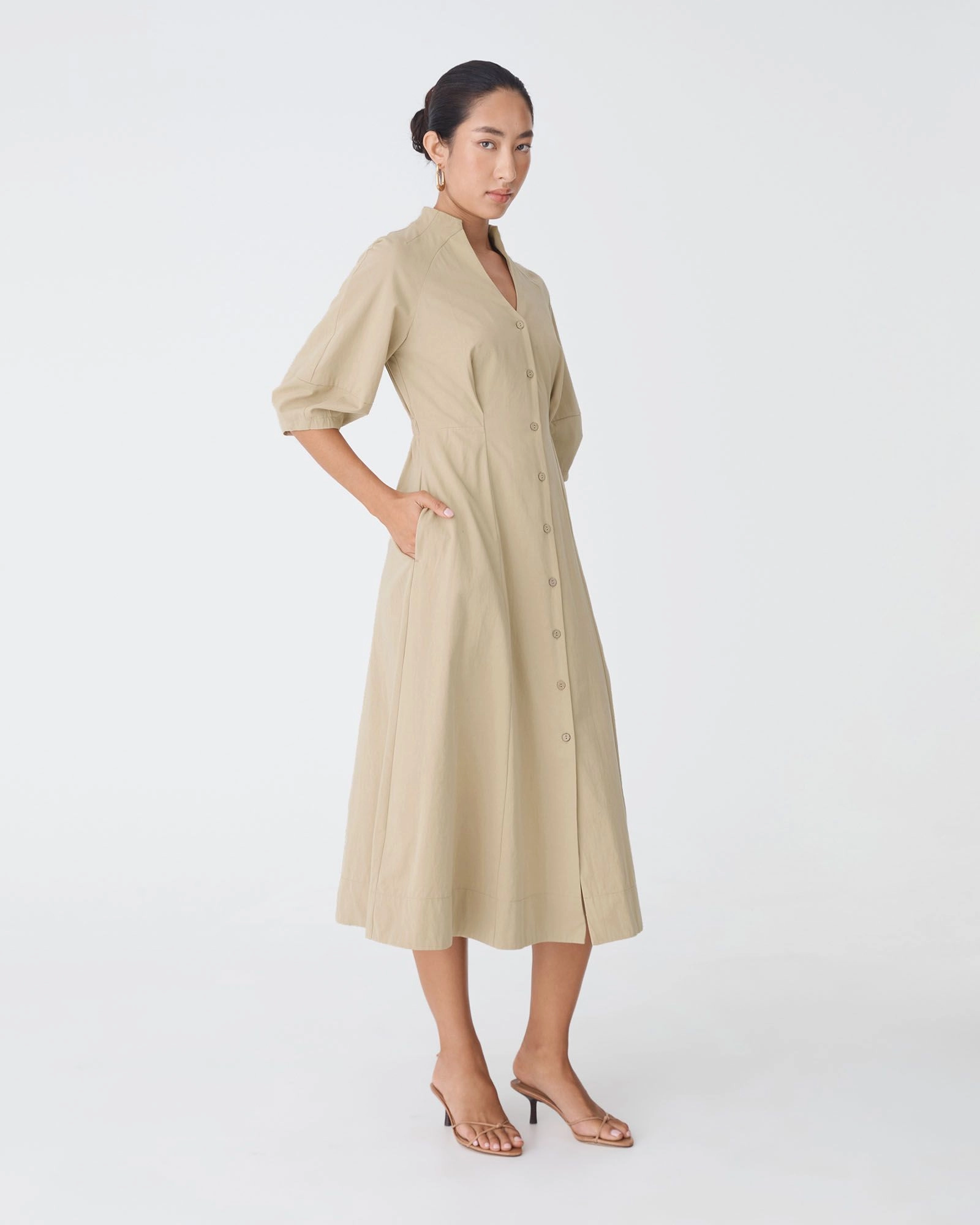 - Midi-length shirt dress