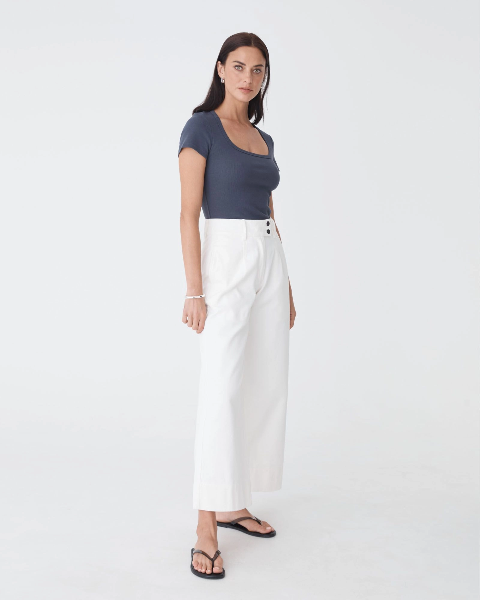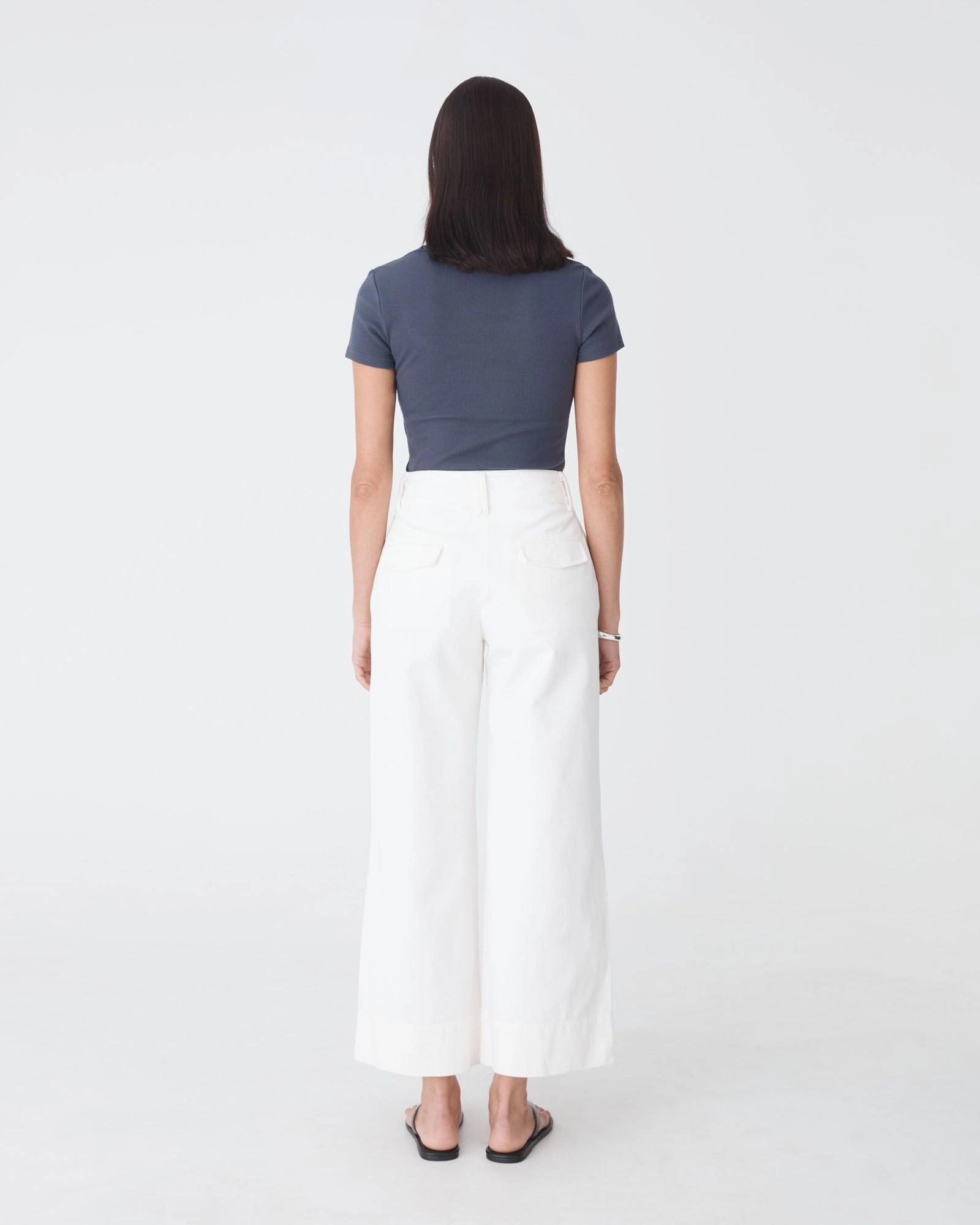 - Straight, wide-leg silhouette