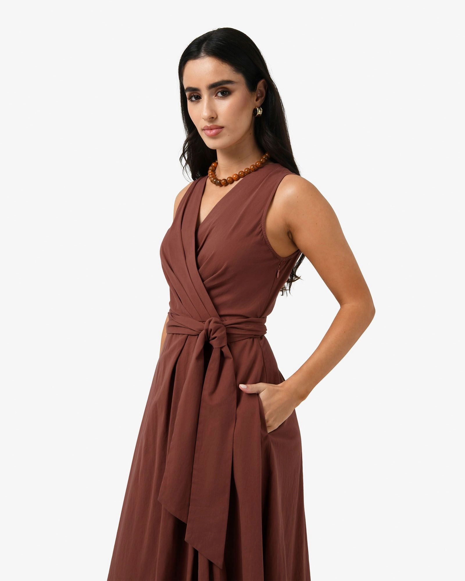 The Nattai Crossover Dress is a dress that works from weekdays to weekends. Made from 100% cotton, it features a front faux wrap with a self-tie belt, midi in length, while its statement V-neckline and pleated details add an elegant touch. Accessorise with tonal jewellery to complete your look.