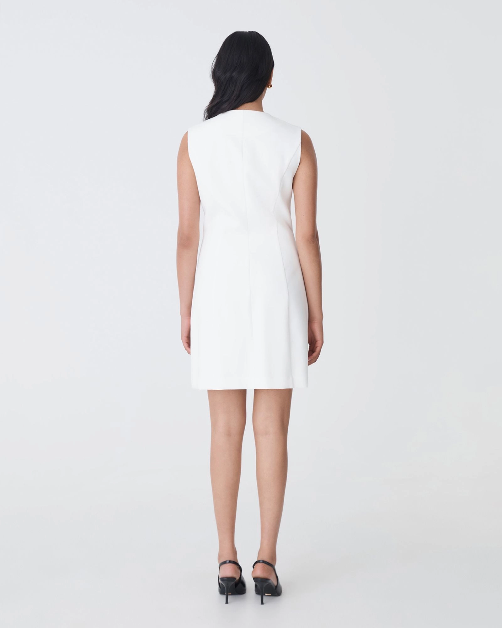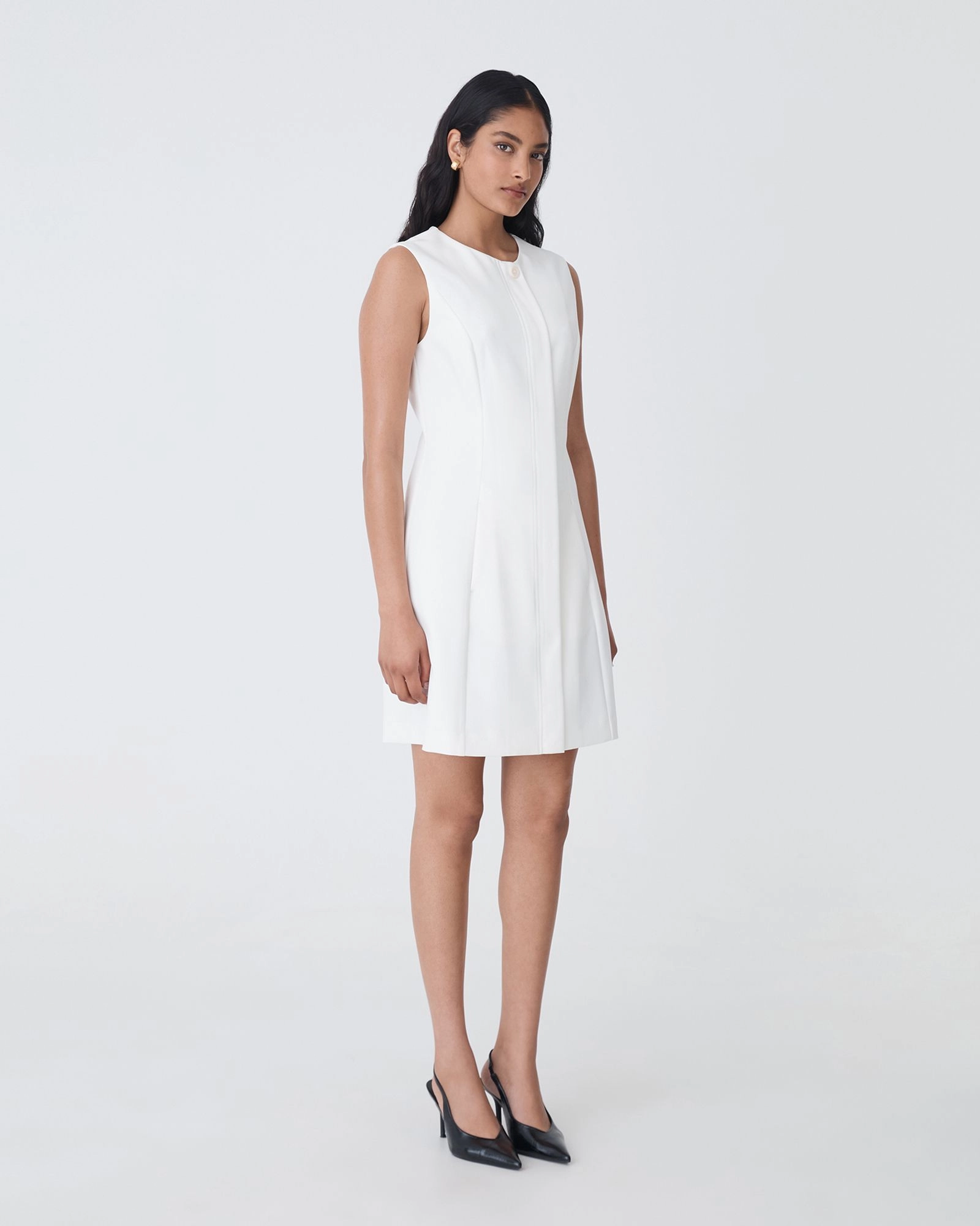 The Pera Concealed Panel Dress is a sleek, tailored style designed for easy, polished wear. Featuring a concealed zip front and subtle panel detailing, it creates a smooth, slim silhouette. The sleeveless cut and classic round neckline make it perfect for the office or off-duty occasions. Style with heels or statement accessories to complete the look.