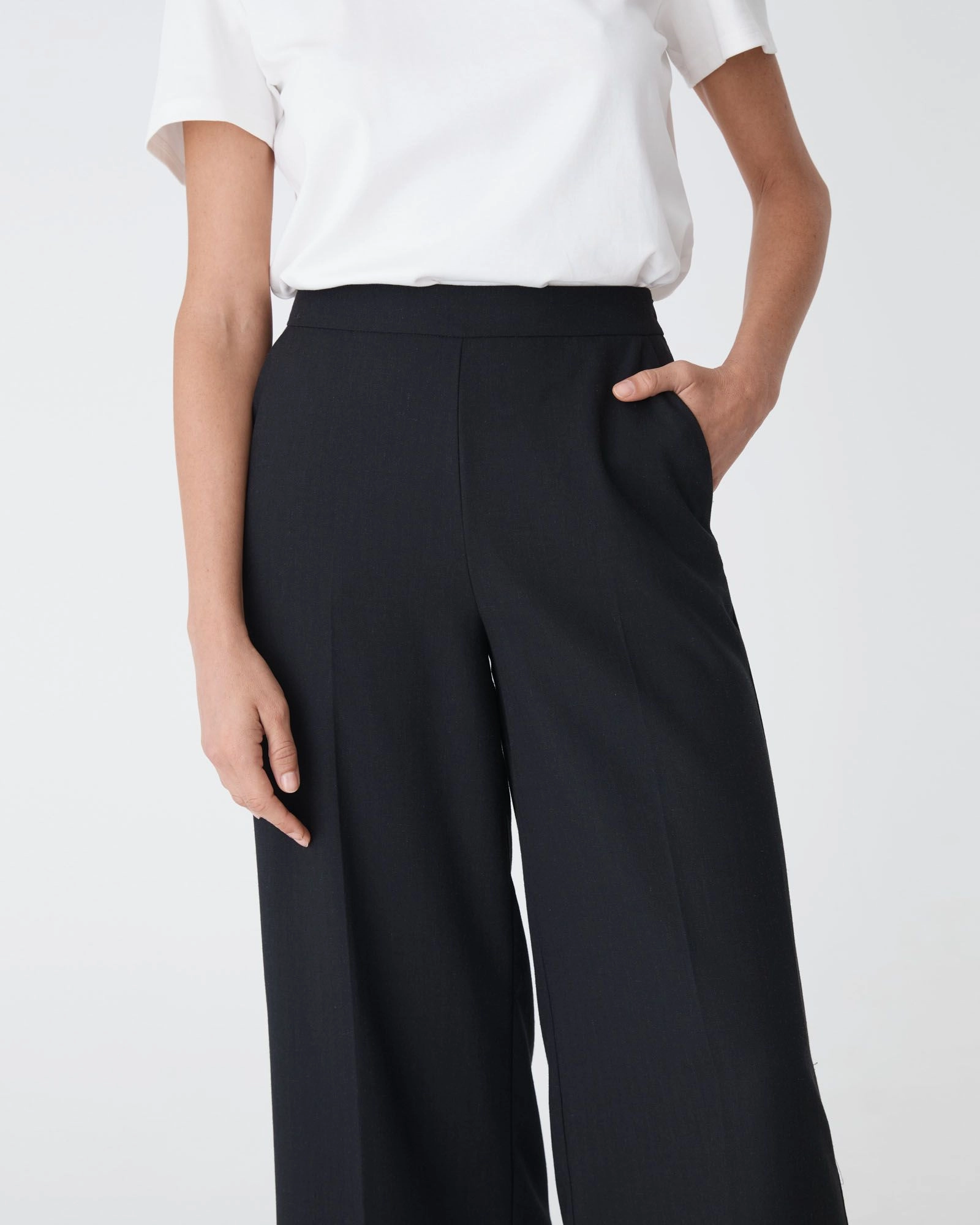 The Ralph Wide Leg Culottes is a versatile staple that works effortlessly for both office and off-duty styling. Featuring a flattering mid to high-rise waist, tailored wide-leg shape, and a clean side-zip finish, it is also designed with functional side pockets. Style with simple tops for a polished look with all-day comfort.
