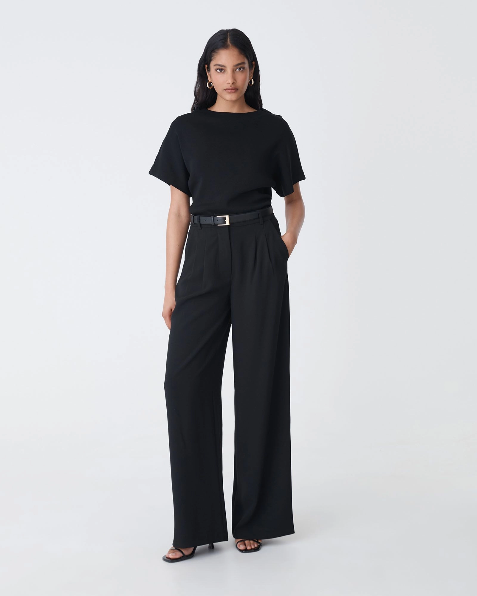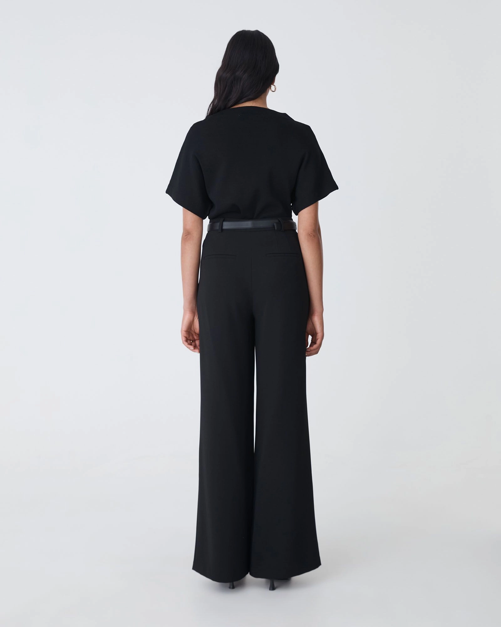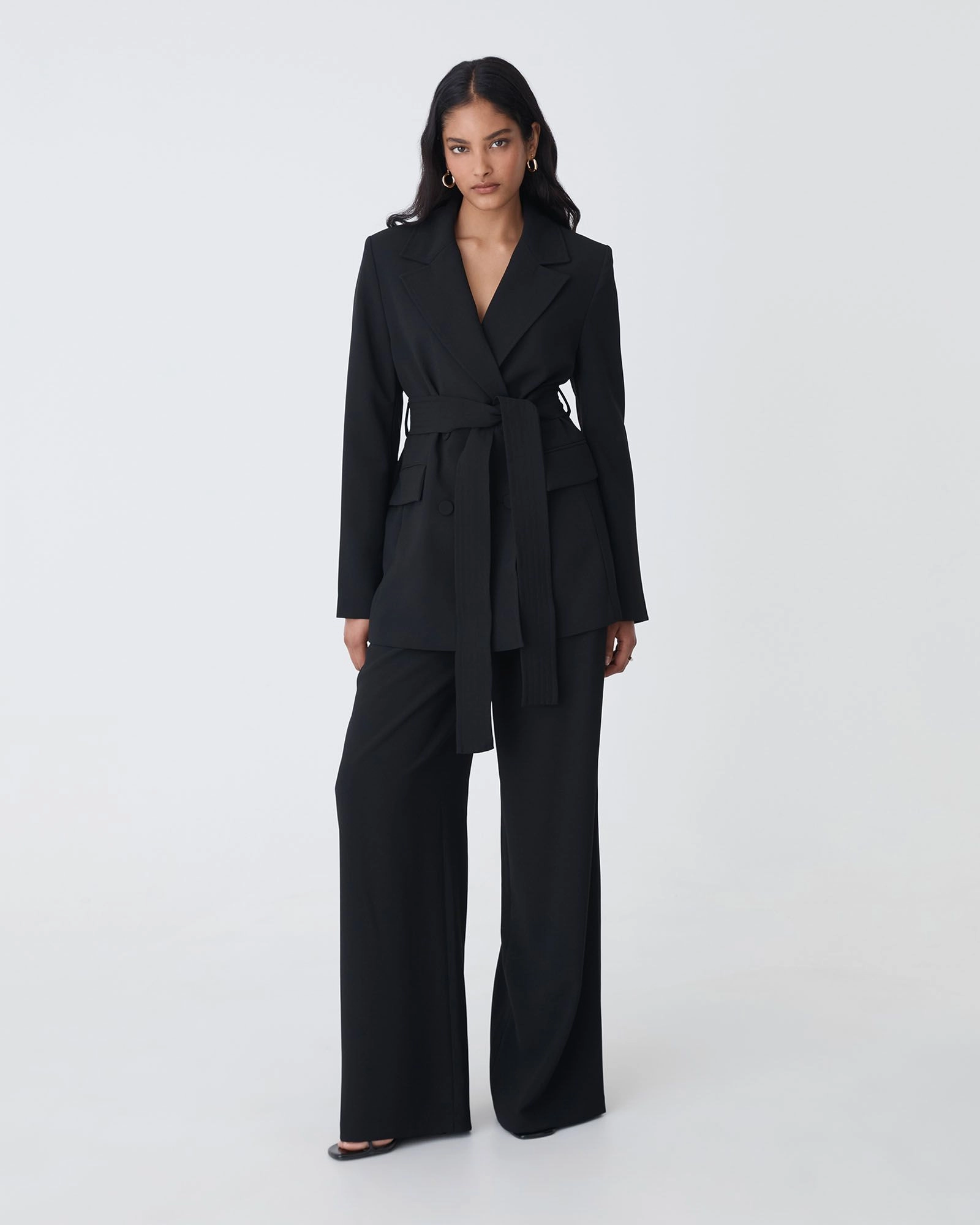 Effortless and chic, the Rumy Wide Leg Tailored Pants features a classic wide leg and high waist design. Complete the look with the matching Rumy Double Breasted vest and pumps for a stylish office attire.