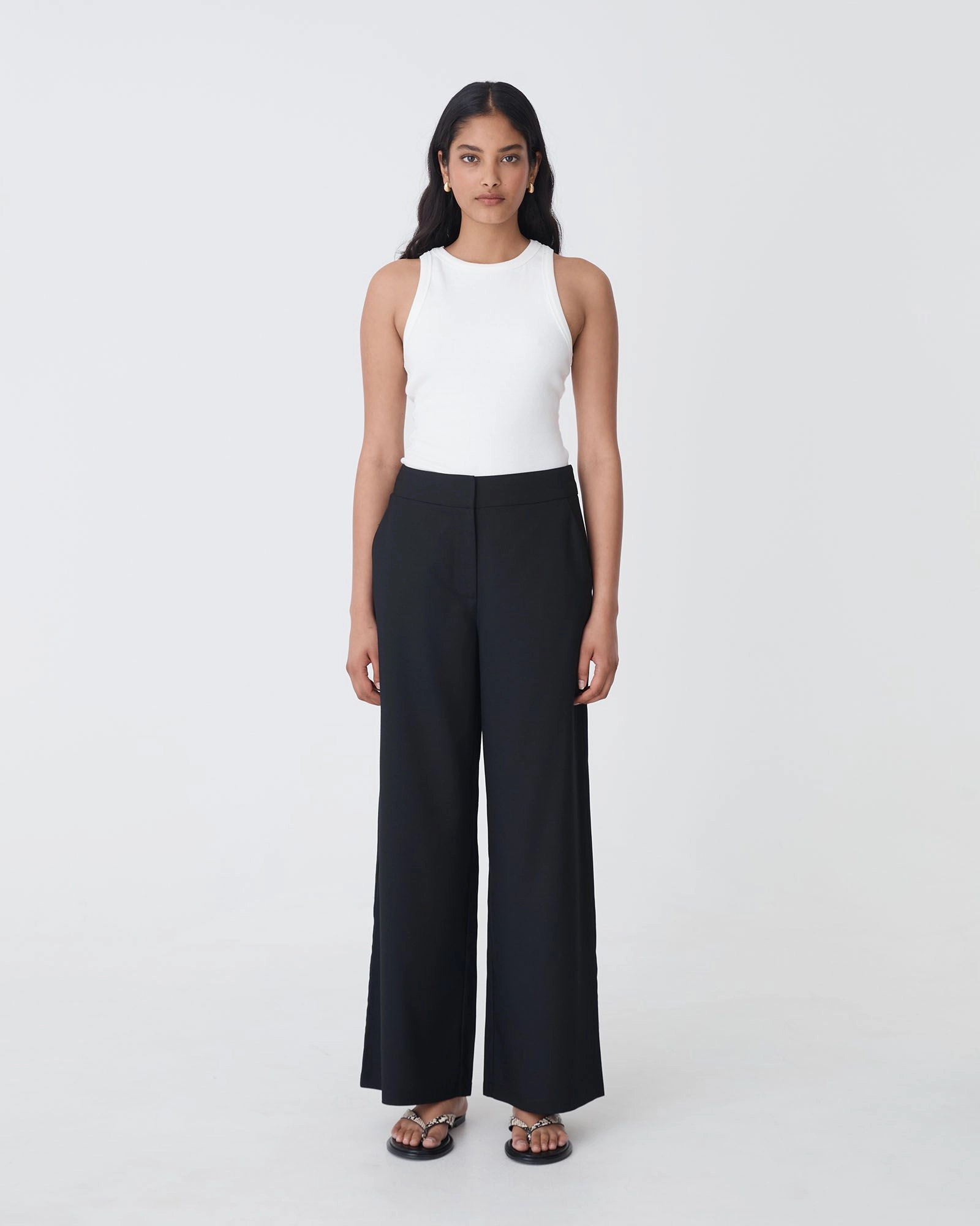 - Straight wide-leg silhouette