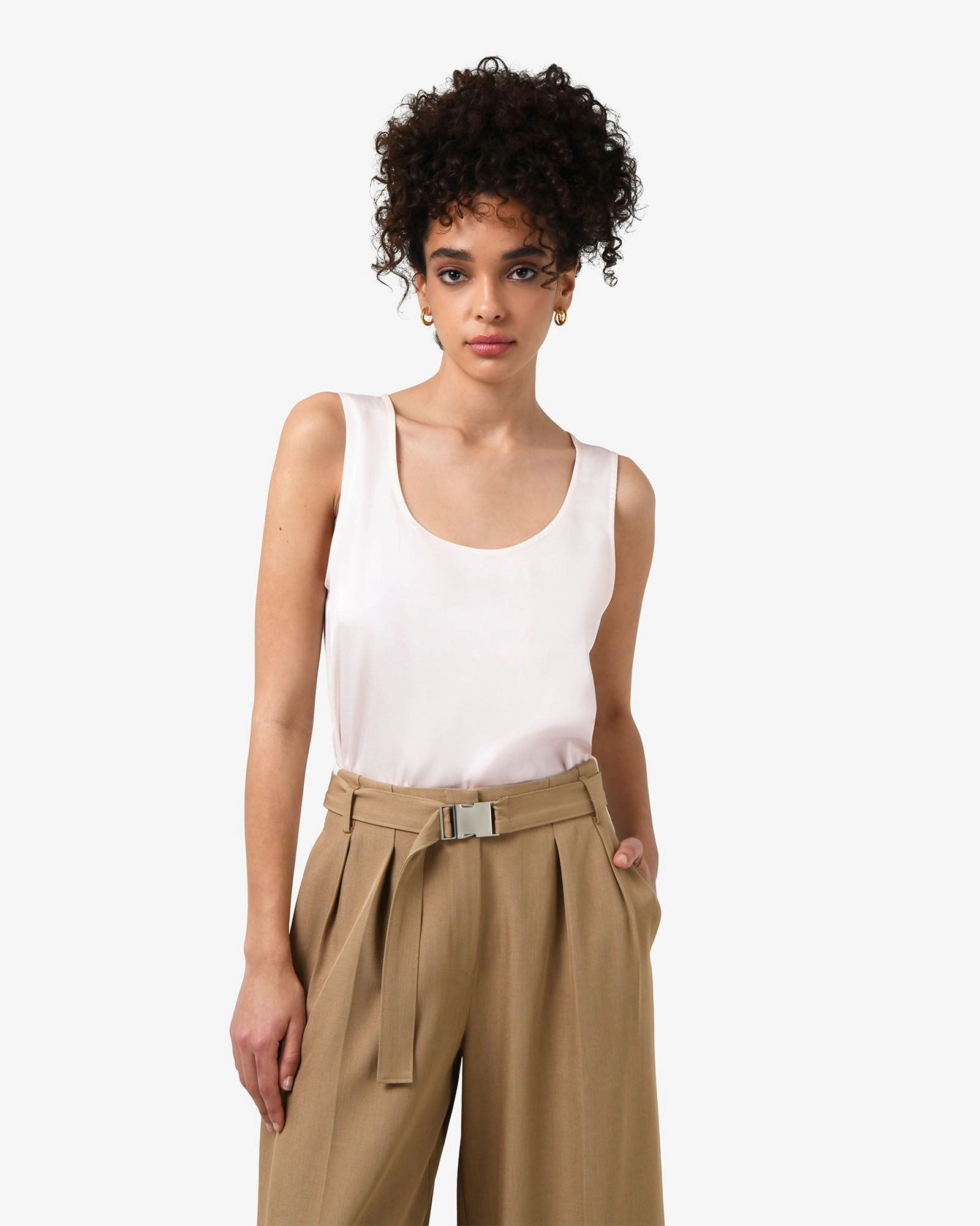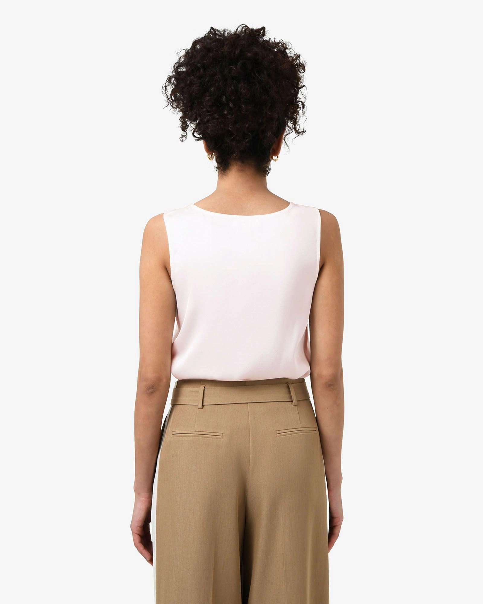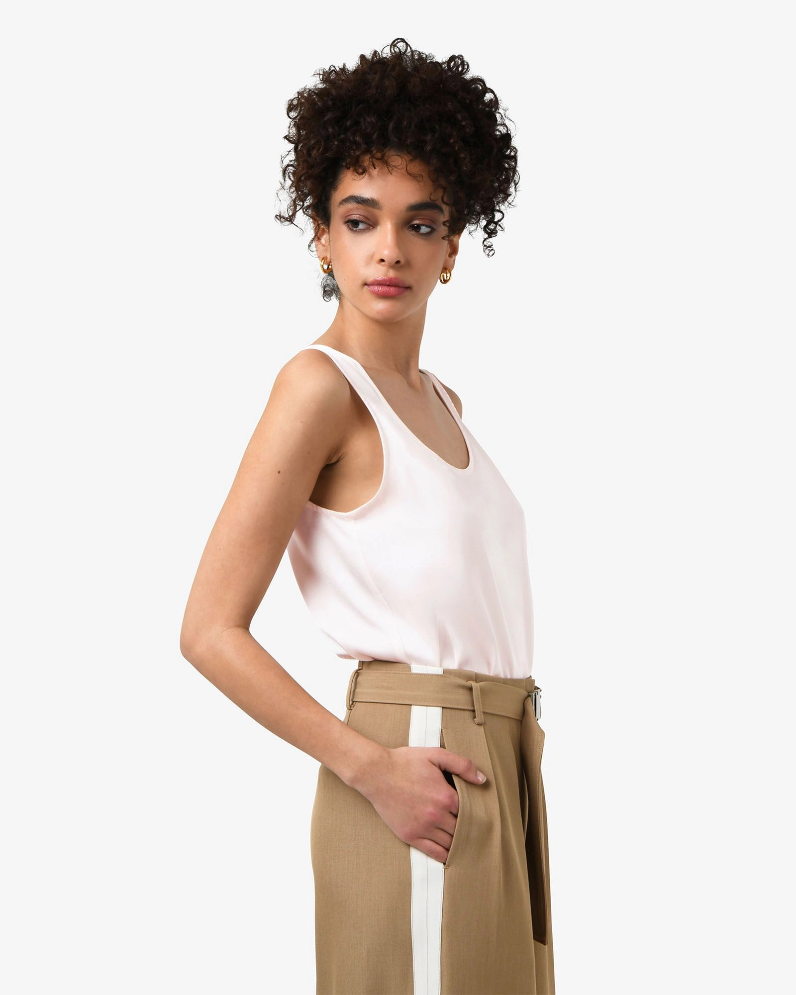 The Sadin Satin Tank Top is a timeless wardrobe essential crafted from lightweight satin with subtle sheen that feels soft and smooth against the skin. Featuring a scoop neckline and a relaxed, flowy silhouette, it pairs perfectly with the Sadin Pull-On Pants for a coordinated look.