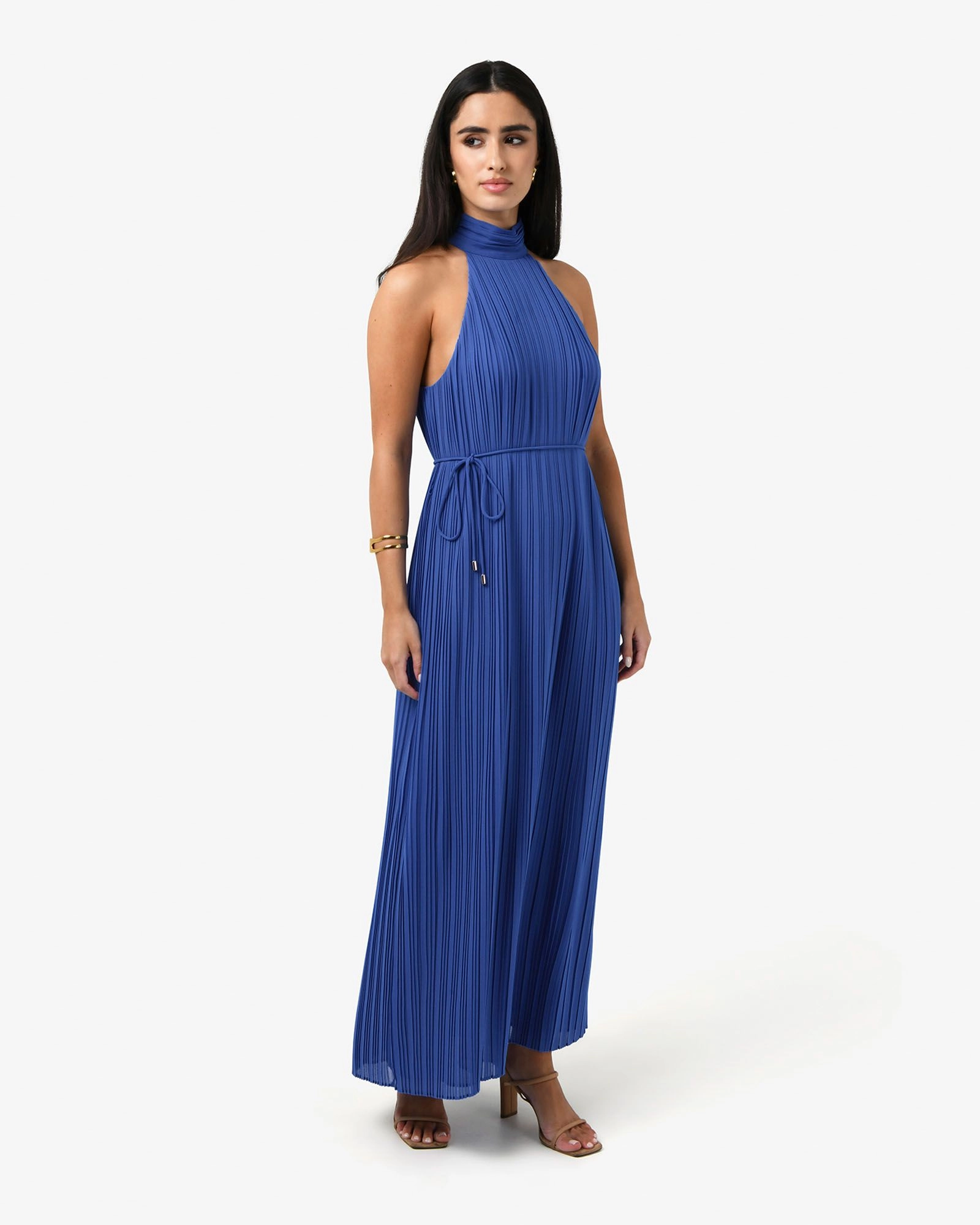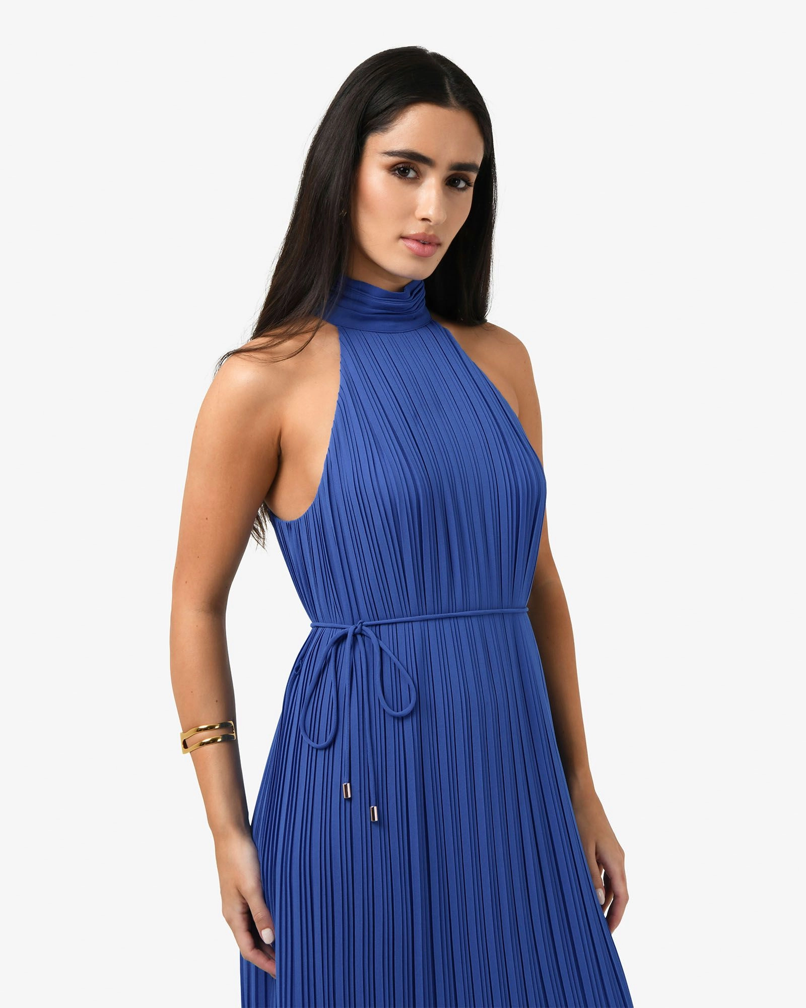 Make an unforgettable entrance in the Shelly Chiffon Pleated Dress, a flowing chiffon gown designed for elegance and impact. With its all-over pleats, high halter neckline, and maxi length, the dress combines timeless sophistication with modern detail, making it the perfect choice for weddings, evening events, and formal occasions.